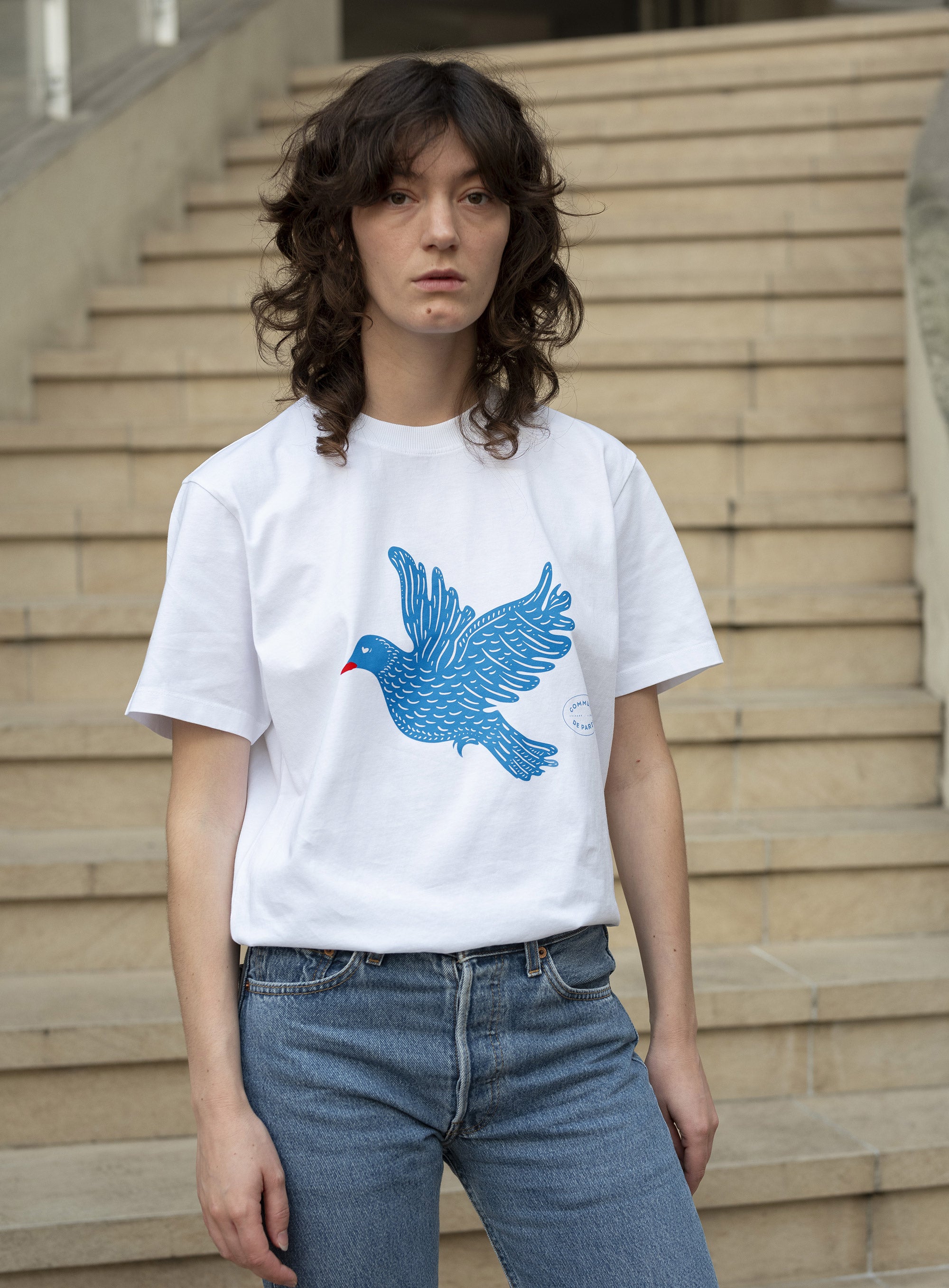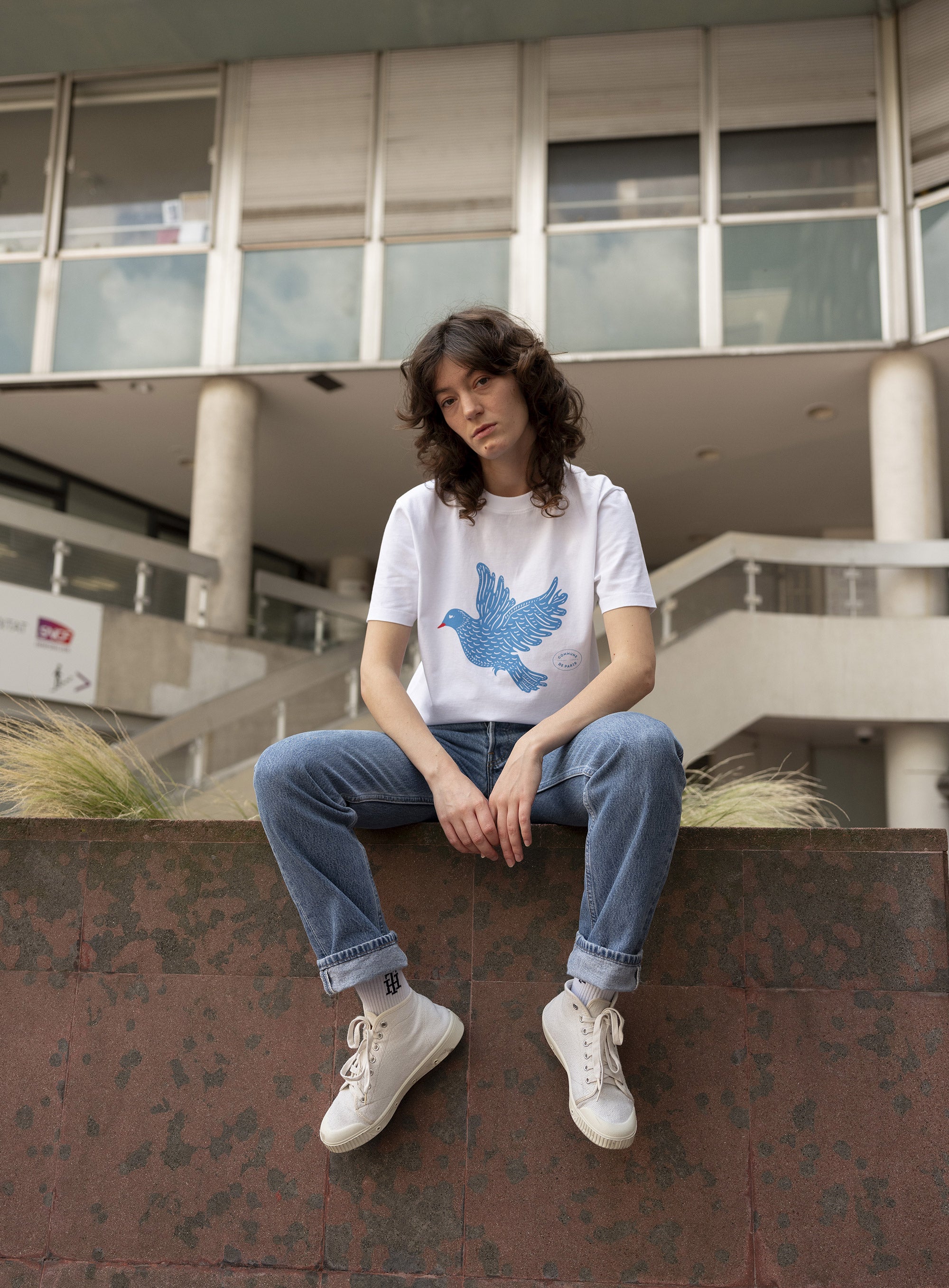 Notre tee-shirt Colombe possède une coupe décontractée, les épaules légèrement tombantes. Prenez une taille en dessous pour un fit plus classique.